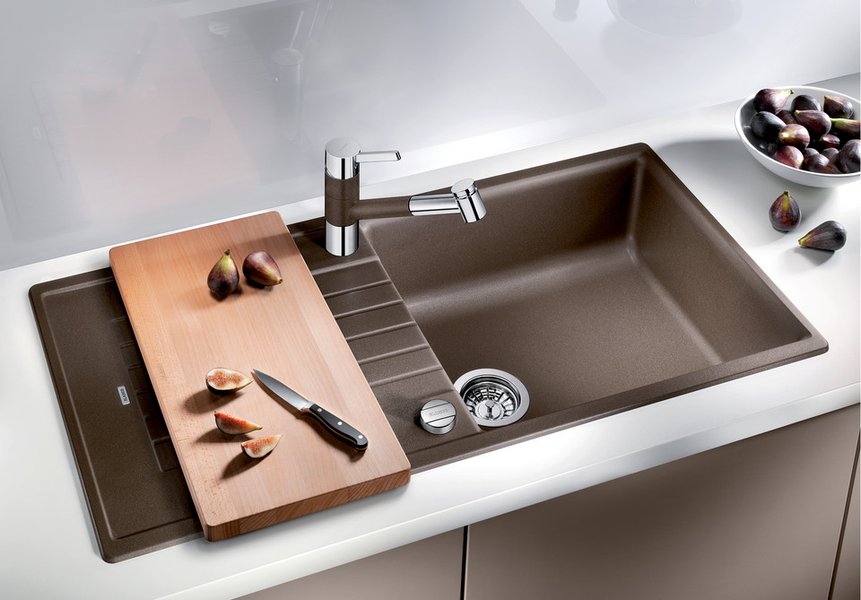 - Plage de robinetterie de caractère comme cadre élargissant l’égouttoir